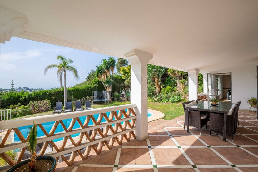 This charming villa offers a perfect blend of comfort, potential, and privacy. Nestled in a quiet cul-de-sac in El Paraíso Alto, the property sits on a generous plot surrounded by mature gardens and lush greenery. The centerpiece is a private swimming pool with spacious sunbathing terraces and panoramic views of the surroundings.