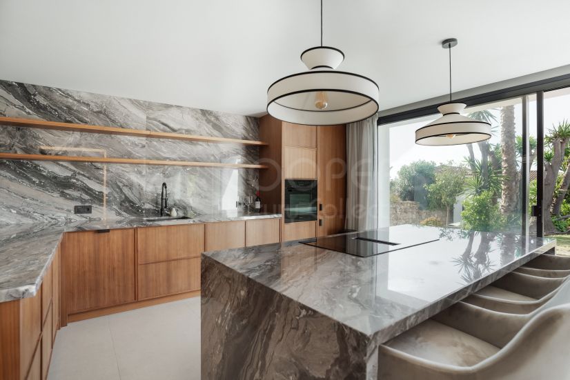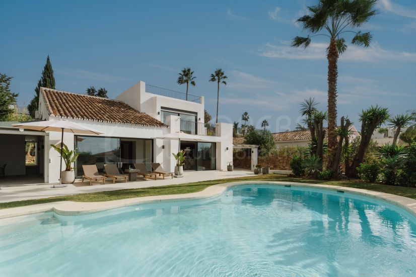 Just a short walk from Los Naranjos Golf Club, this beautifully renovated villa offers bright, minimalistic and timeless Scandinavian design. With its south-facing orientation this villa gets plenty of sunlight all day and offers beautiful views of Marbella’s Golf Valley.