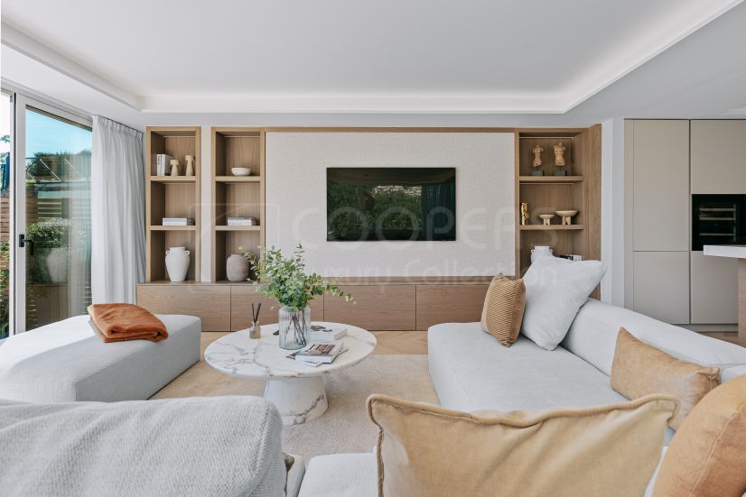 Totalmente renovado en 2025, este elegante apartamento en planta baja orientado al sureste cuenta con 230 m² construidos, incluyendo 140 m² interiores y una impresionante terraza y jardín privado de 90 m² con vistas panorámicas al lago, la montaña La Concha y el mar Mediterráneo.