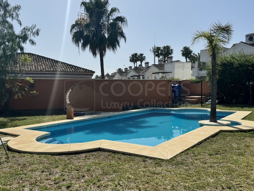 Se ofrece en venta una elegante vivienda unifamiliar aislada, ubicada en una tranquila urbanización privada que dispone de servicio de jardinería y piscina comunitaria. La propiedad, de estilo Mediterráneo, se asienta sobre una parcela de 646 m² y cuenta con una superficie construida de 157 m², distribuida en dos niveles, con óptima orientación sur que garantiza una excelente luminosidad natural durante todo el día.