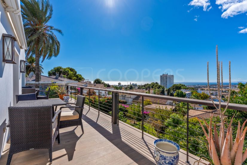 Esta hermosa casa se encuentra en una ladera entre Nueva Andalucía y San Pedro, ofreciendo increíbles vistas panorámicas en cada dirección. Está en una de las calles más deseadas de la zona – tranquila pero cerca de todo: campos de golf, grandes restaurantes, tiendas, playas y más.