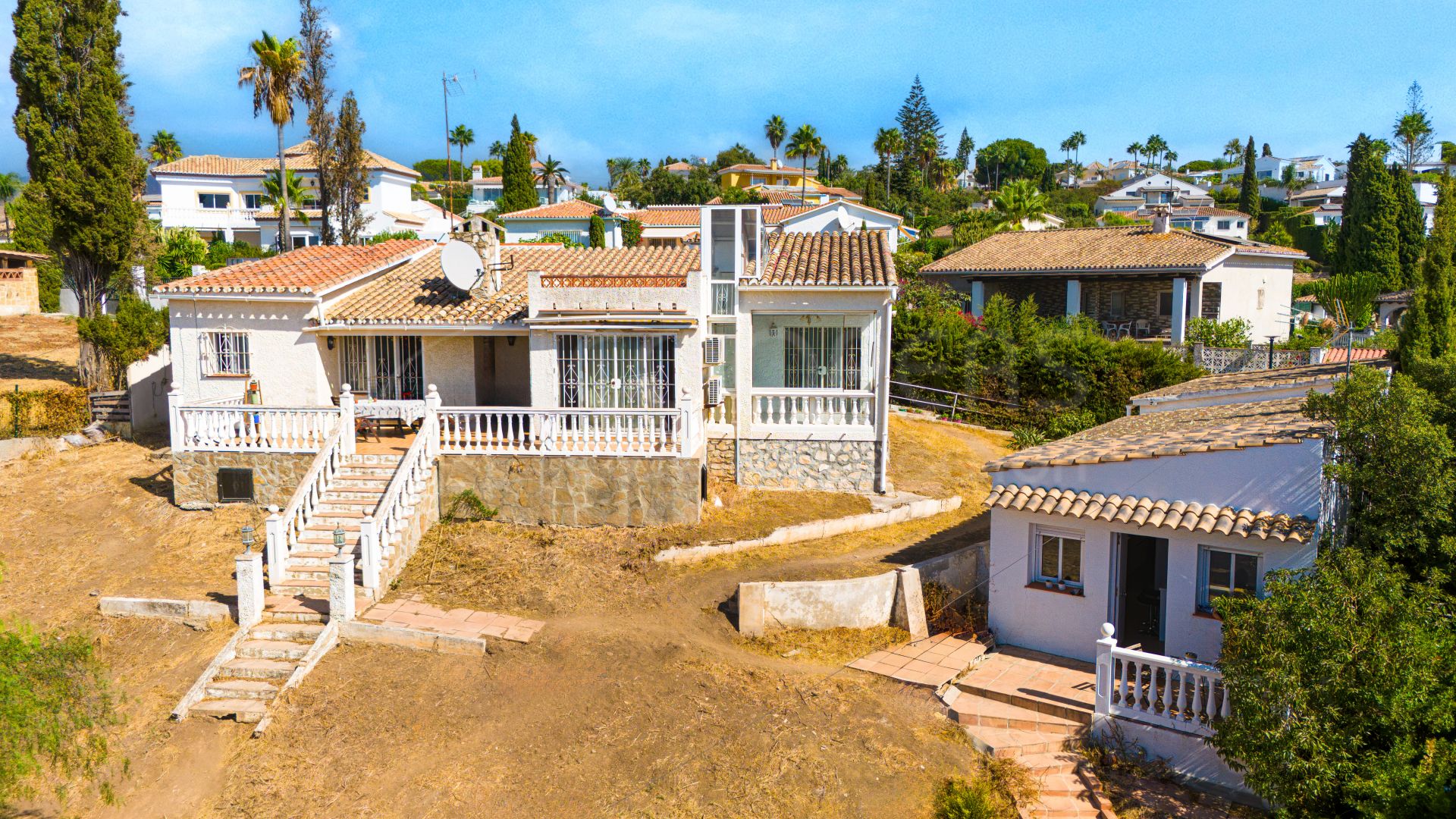 Situado en la tranquila y codiciada zona residencial de Parque Elviria, esta encantadora villa orientada al suroeste se encuentra en una generosa parcela de 1.084m2 y ofrece una excelente oportunidad de renovación. Ideal para aquellos que buscan crear su hogar familiar de ensueño o inversores que buscan una propiedad con gran potencial. La casa de un solo nivel cuenta con un apartamento de invitados totalmente renovado, que proporciona privacidad y comodidad adicional. El diseño actual incluye varios dormitorios bien proporcionados, un amplio salón, comedor independiente, cocina y baños familiares. Las grandes ventanas llenan el interior con luz natural y crean una conexión perfecta con los jardines circundantes. Situado en un barrio seguro y tranquilo, es sólo un corto paseo de la playa, campos de golf, escuelas internacionales, y todas las comodidades locales. Esta es una oportunidad única de adquirir una propiedad con bases sólidas, tierras generosas y el potencial de convertirse en un hogar excepcional en una ubicación privilegiada de la Costa del Sol.