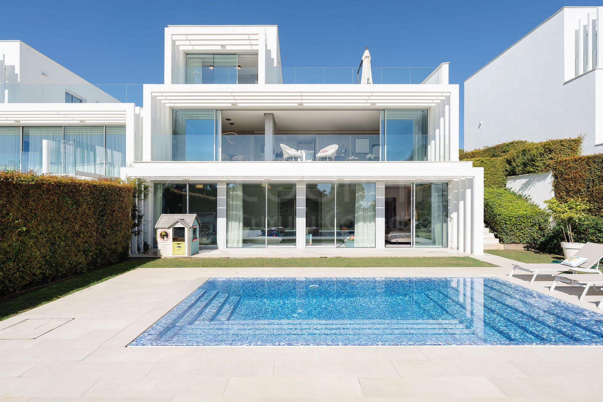 Situado en una comunidad cerrada de 24 horas segura, los residentes también disfrutan del acceso a un gimnasio, piscina y dos pistas de padel, con los clubes de golf y playa de clase mundial de La Reserva a pocos minutos. Cerca de las cafeterías, restaurantes y esenciales cotidianos son fácilmente accesibles, ofreciendo lujo, privacidad y estilo de vida en una de las direcciones más codiciadas de Sotogrande.